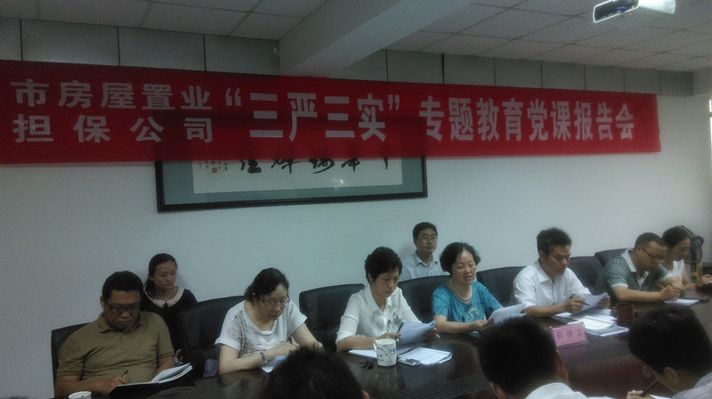 6月26日下午,市住建委黨委委員、副主任程國志來到市房屋置業(yè)擔(dān)保公司,專門作了“三嚴(yán)三實”專題教育黨課輔導(dǎo)。公司領(lǐng)導(dǎo)班子全體成員、中層骨干、黨員、發(fā)展對象及入黨積極分子30余人參加報告會?! ?br />